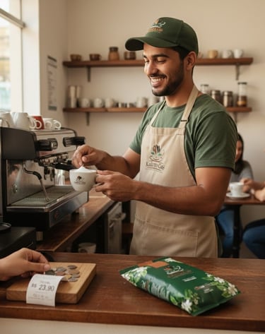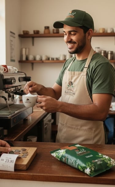 Cenas do Kadampa Café: produção, blend e embalagem.
